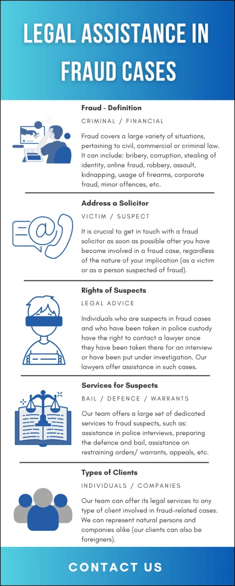 Phone and/or internet fraudshave become increasingly common in the UK, as they are easy to be set up and the general population is not very well educated with regards to the scams that can be done in these cases. If you have been the victim of an online scam, please address our Manchester solicitors for advice. Below, you can read an infographic presenting our legal assistance in fraud cases: